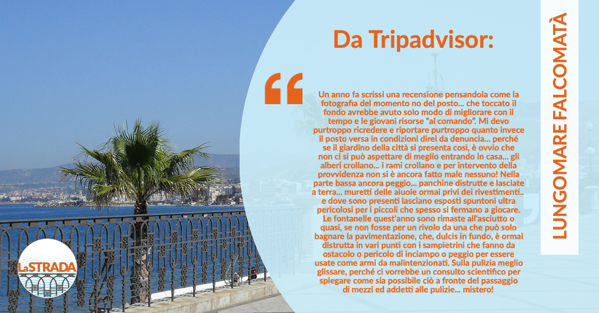 Nell’epoca del web, abbiamo a disposizione uno strumento eccezionale per conoscere l’impressione che la nostra città dà di sé a chi la guarda con occhi esterni: i portali di recensioni. Abbiamo dato un’occhiata e il quadro che ne emerge è, a tratti, desolante. Reggio era e continua a essere la città del “potrebbe”: un luogo ricchissimo di potenzialità inespresse e non sfruttate, un luogo nel quale paesaggi sublimi, storia, cultura, eccellenze locali coesistono con incuria, degrado e abbandono. Nello stesso quartiere, nella stessa via, persino nella stessa aiuola. “Signora trasandata”, “terrazzo da ristrutturare”, Reggio appare una città incapace di prendersi cura di sé, di ripristinare e mantenere il decoro, di garantire le basi del vivere civile. Noi che qui ci viviamo lo sappiamo bene.