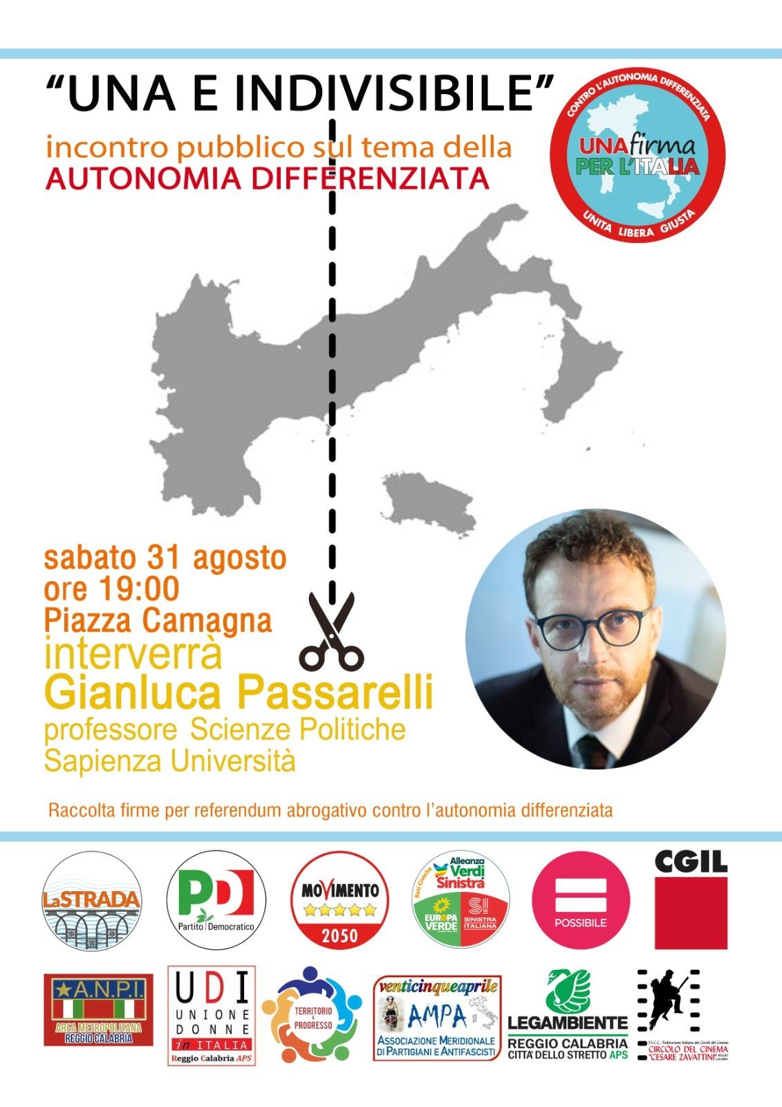 Sabato 31 agosto alle ore 19.00 a Piazza Camagna un importante incontro pubblico con il professore Ganluca Passarelli della Sapienza Università. Discuteremo di autonomia differenziata.